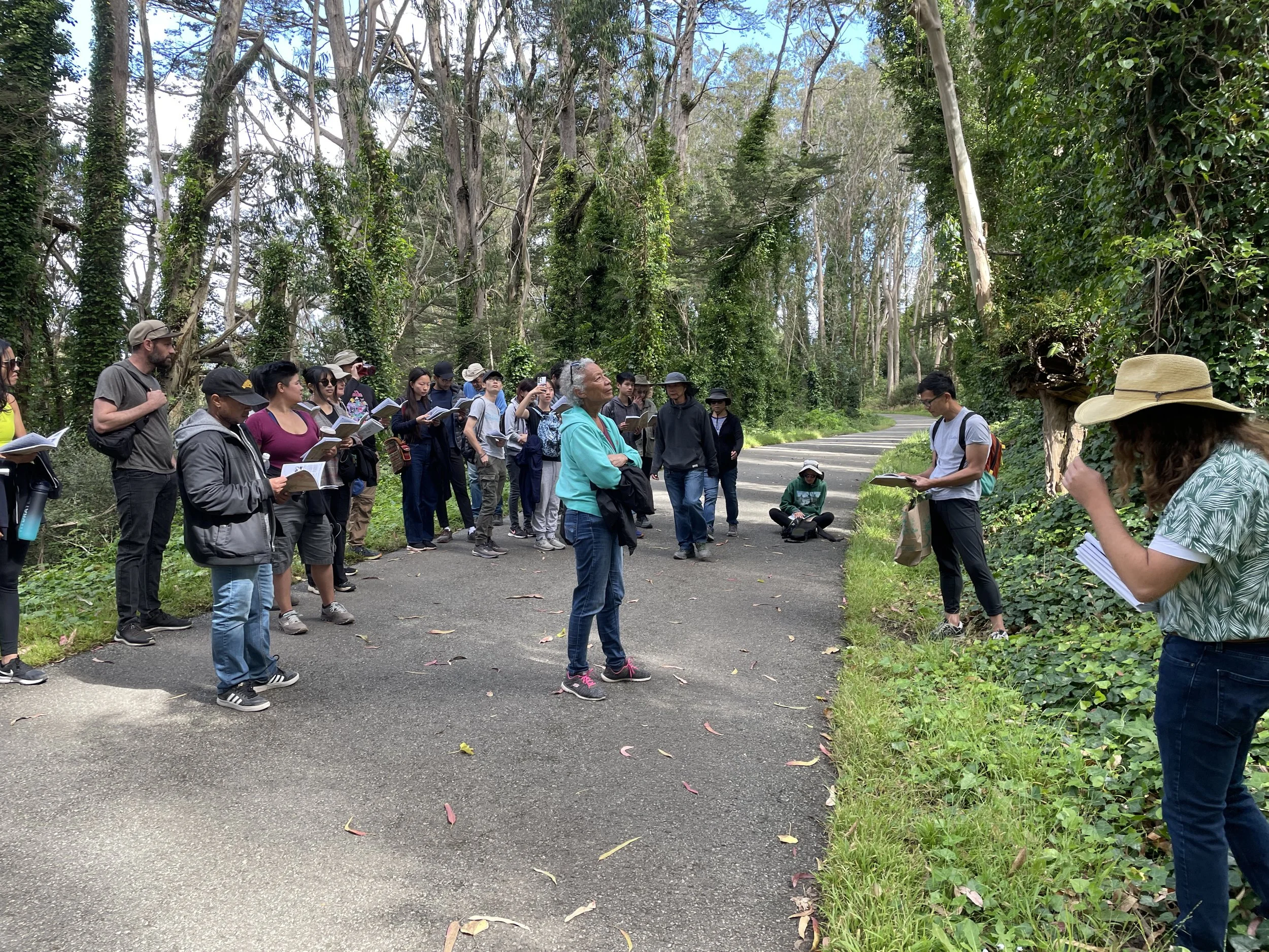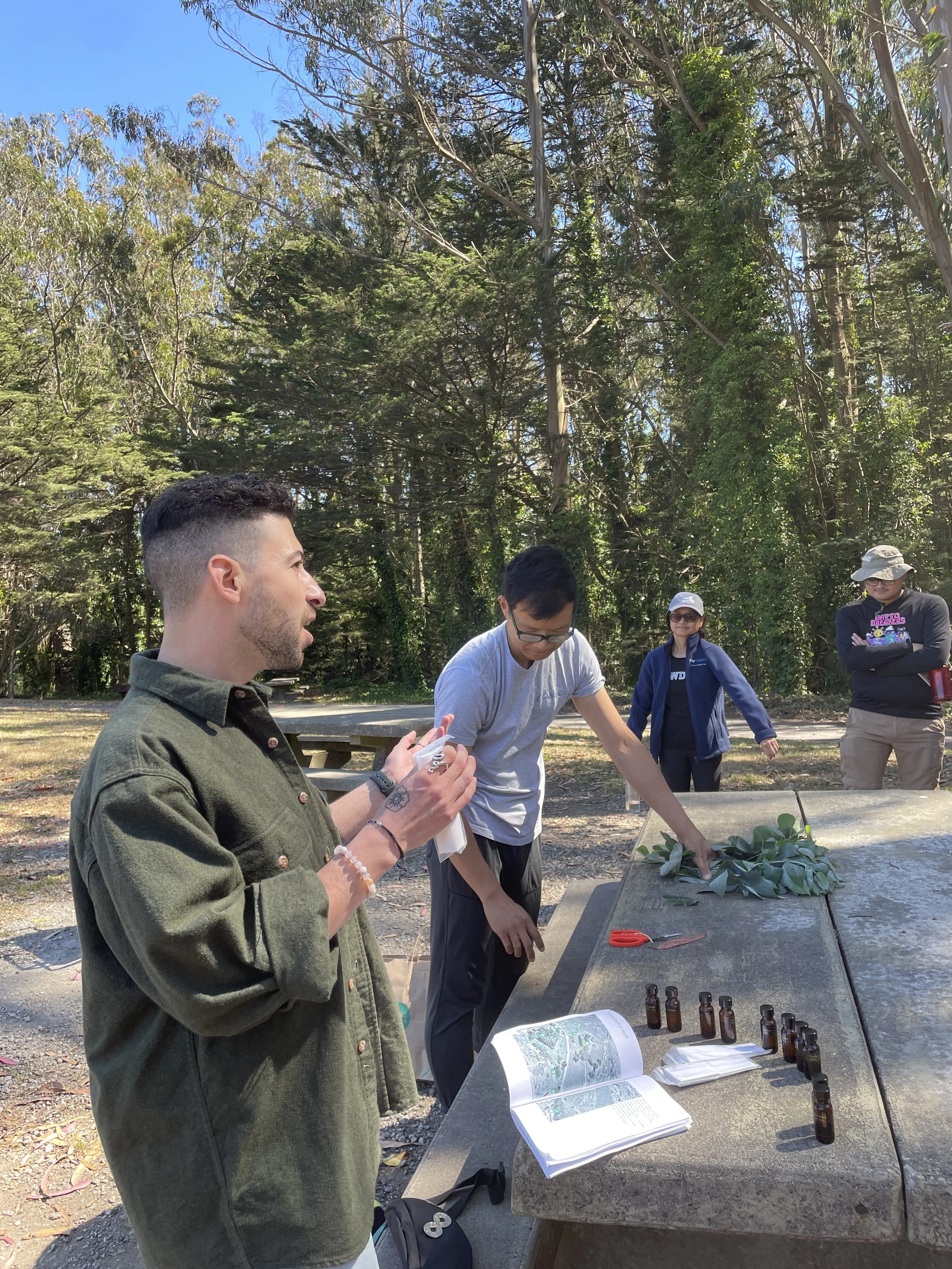 We hosted an interpretive hike through the eucalyptus forest on San Bruno Mountain. The guided 3 mile hike explored different approaches to habitat "restoration" under eucalyptus forests, native plant successes amidst the leaf litter, and the unique histories and stories of this controversial ecosystem. We also had a special workshop by local perfumer Mauricio Garcia who brought seven different eucalyptus derived compounds and shared new ways to experience our sense of smell.